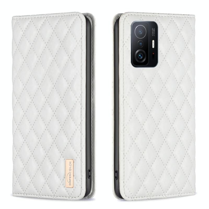 Για Xiaomi 11T / 11T Pro Diamond Lattice Μαγνητική δερμάτινη θήκη Flip Phone Case (Λευκό)