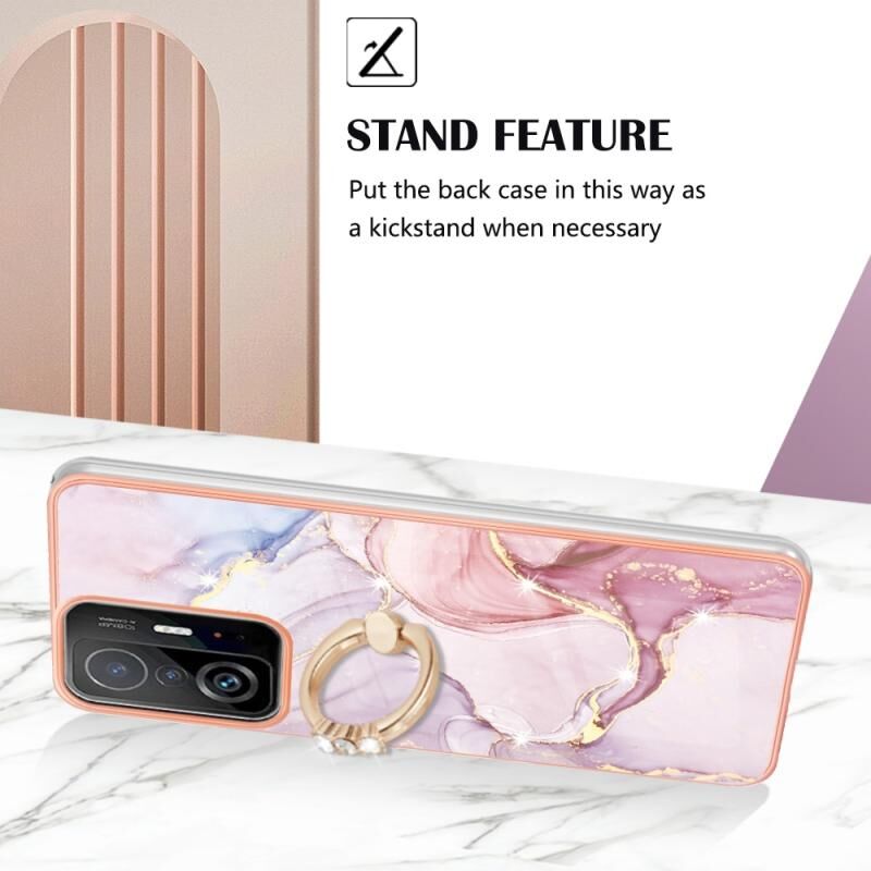 Θήκη κινητού τηλεφώνου TPU με σχέδιο μαρμάρου και ηλεκτρολυτική επικάλυψη για Xiaomi 11T / 11T Pro με δαχτυλίδι (Ροζ Χρυσός 005)