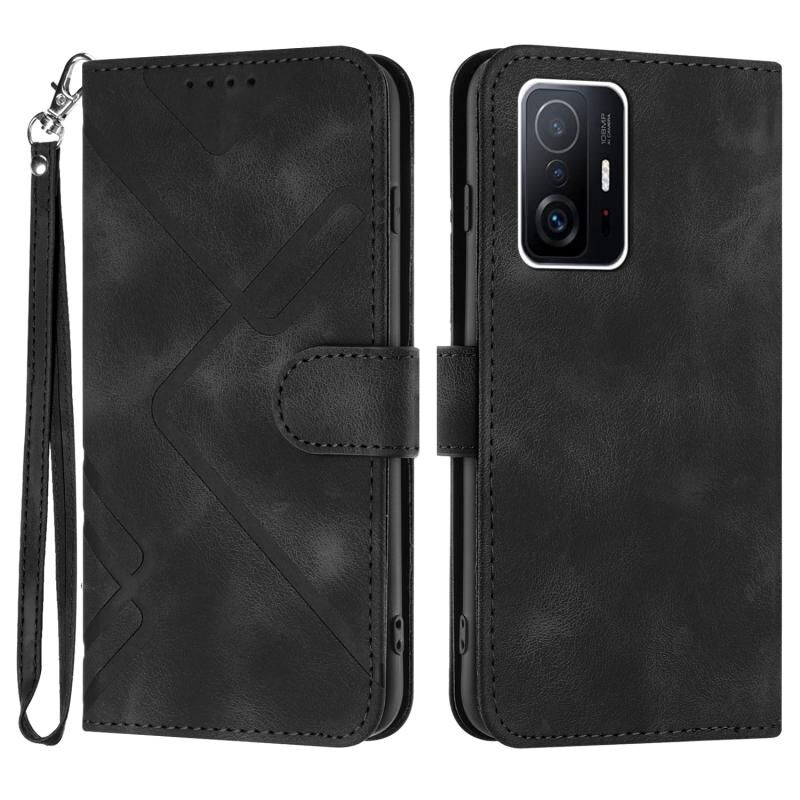 Για Xiaomi 11T/11T Pro Line Pattern Skin Feel Leather Phone Case (Μαύρο)