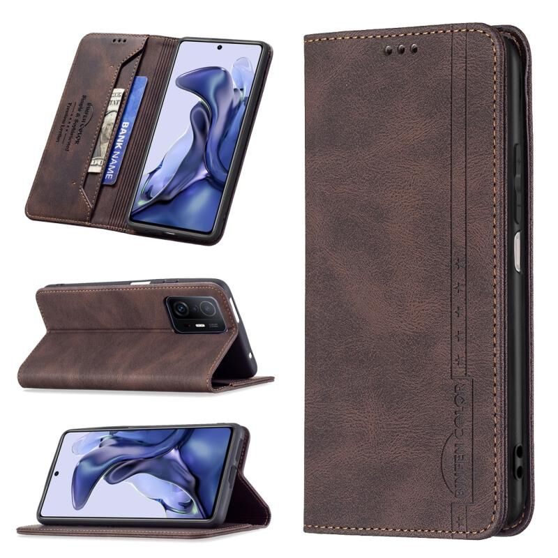 Για Xiaomi 11T / 11T Pro Μαγνητικό RFID Blocking Anti-Theft Δερμάτινη θήκη με θήκη & υποδοχές καρτών & πορτοφόλι (καφέ)