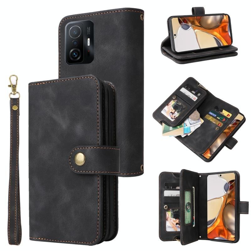 Για Xiaomi 11T / 11T Pro Πολυλειτουργική κάρτα Slot φερμουάρ πορτοφόλι δερμάτινη θήκη τηλεφώνου (μαύρο)
