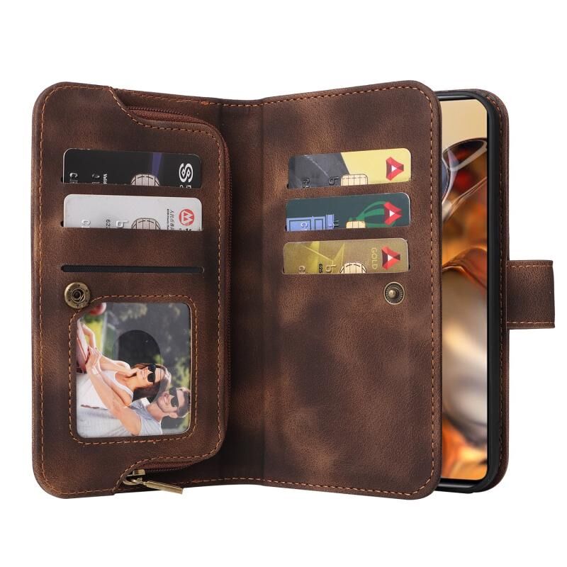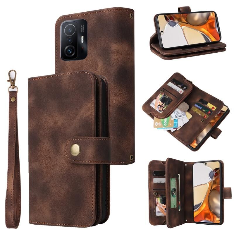 Για Xiaomi 11T / 11T Pro Πολυλειτουργική κάρτα Slot φερμουάρ πορτοφόλι δερμάτινη θήκη τηλεφώνου (καφέ)