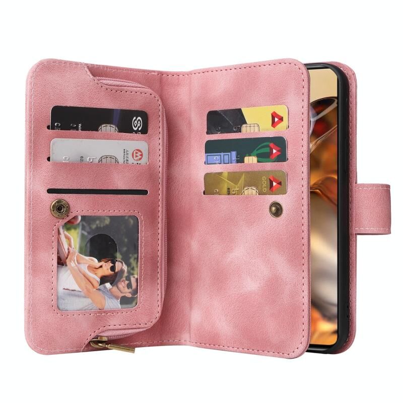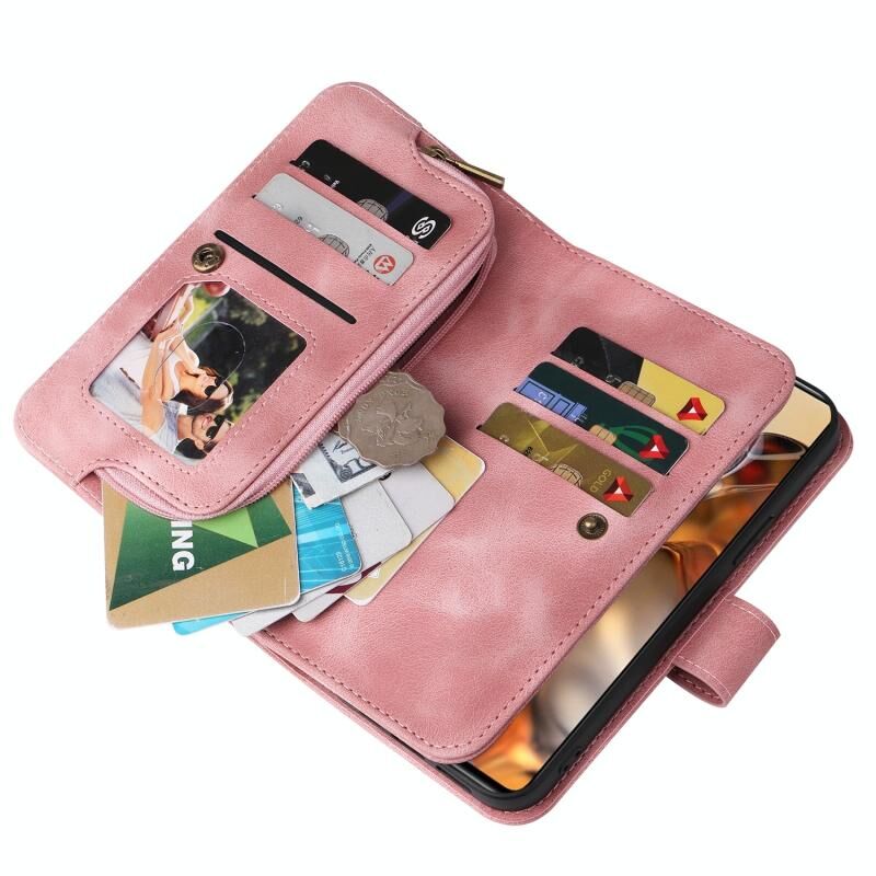 Για Xiaomi 11T / 11T Pro Πολυλειτουργική κάρτα Slot φερμουάρ πορτοφόλι δερμάτινη θήκη τηλεφώνου (Rose Gold)