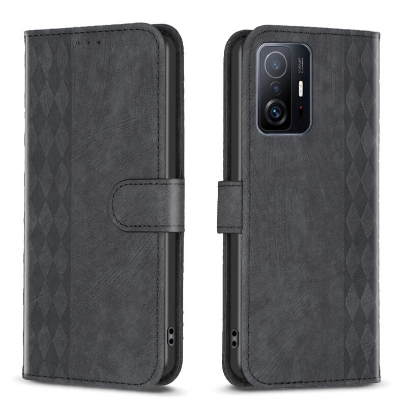 Για Xiaomi 11T / 11T Pro καρό ανάγλυφη δερμάτινη θήκη τηλεφώνου (μαύρο)