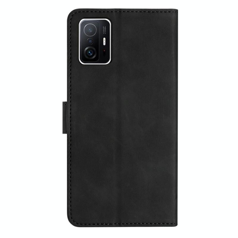 Για Xiaomi 11T / 11T Pro Επτά πεταλούδες ανάγλυφη δερμάτινη θήκη τηλεφώνου (μαύρο)