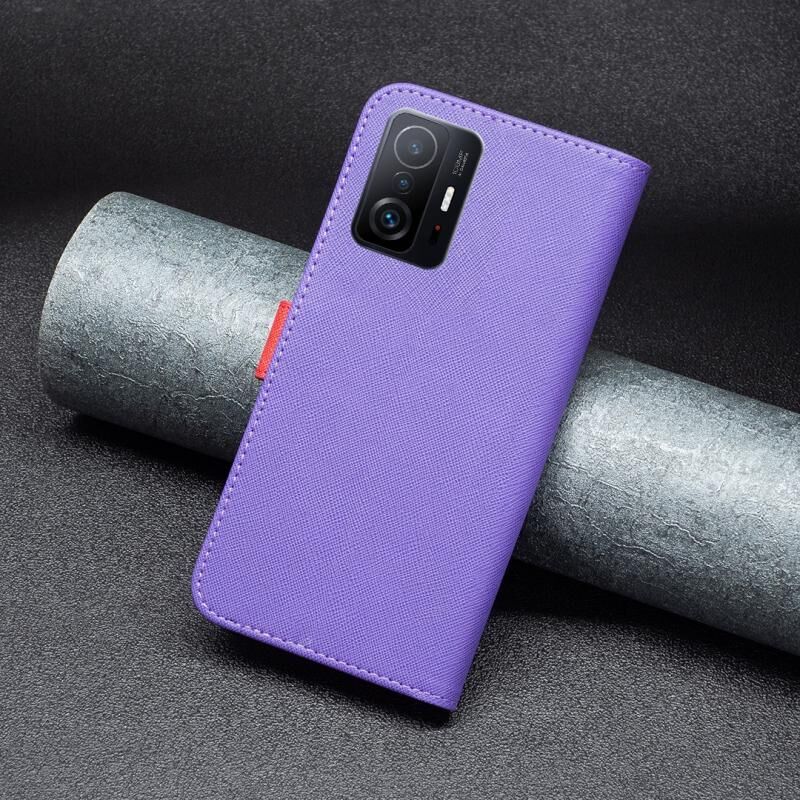 Για Xiaomi 11T BF13 Χρώμα που ταιριάζει με σταυρό Υφή δερμάτινη θήκη τηλεφώνου (μωβ)