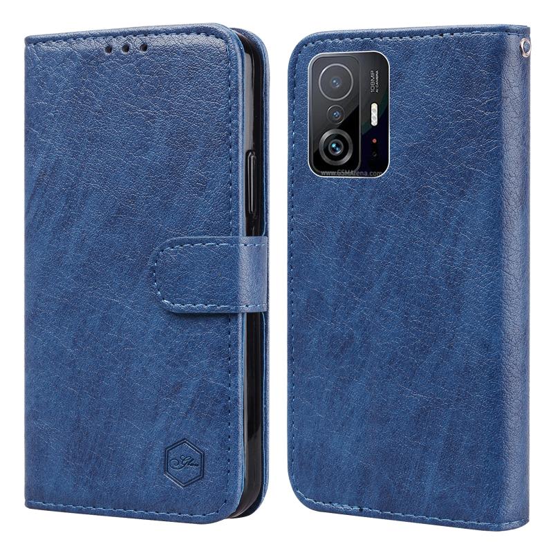For Xiaomi 11T Pro Skin Feeling Oil Leather Texture PU + TPU Phone Case(Dark Blue)