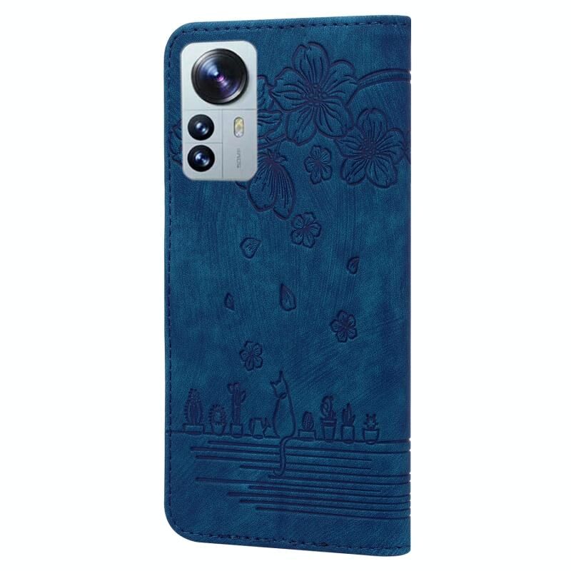 Θήκη δερμάτινη με σχέδιο Sakura Cat για Xiaomi 12 / 12S / 12X (Ρουά Μπλε)