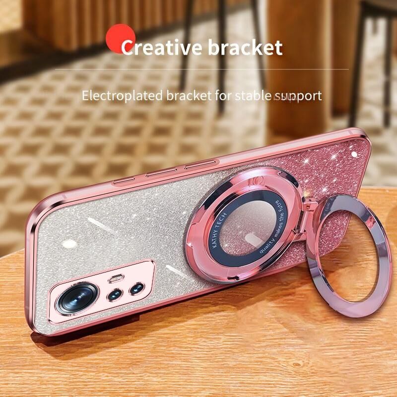 Για Xiaomi 12 / 12S / 12X επιμεταλλωμένο βαθμιδωτή Glitter στρογγυλή κάτοχος TPU τηλέφωνο υπόθεση (μωβ)