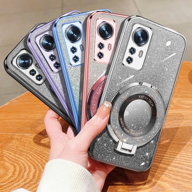 Για Xiaomi 12 / 12S / 12X επιμεταλλωμένο βαθμιδωτή Glitter στρογγυλή κάτοχος TPU τηλέφωνο υπόθεση (Ασημί)