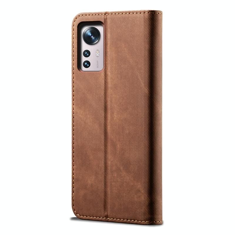Για Xiaomi 12/12S Denim Texture Casual Style δερμάτινη θήκη τηλεφώνου (καφέ)