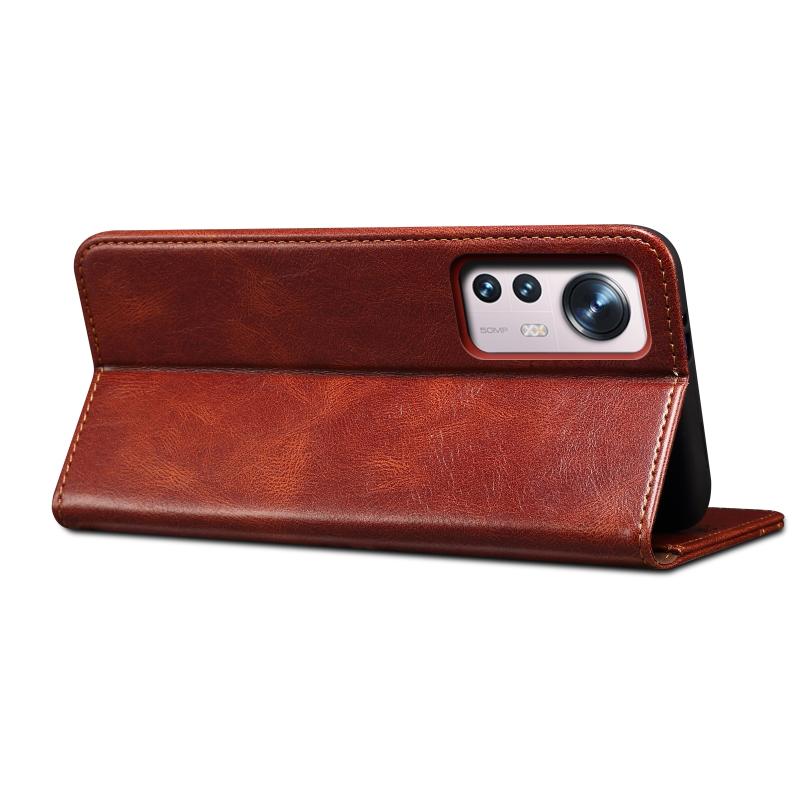 For Xiaomi 12/12S Simple Wax Crazy Horse Texture Leather Phone Case(Brown)