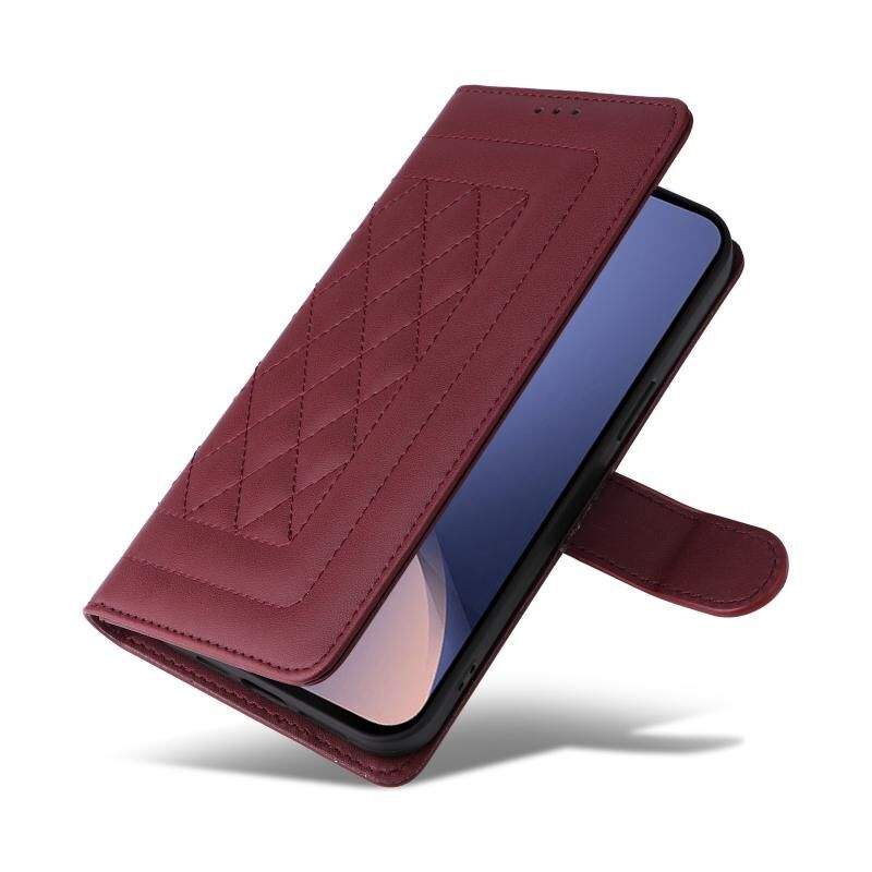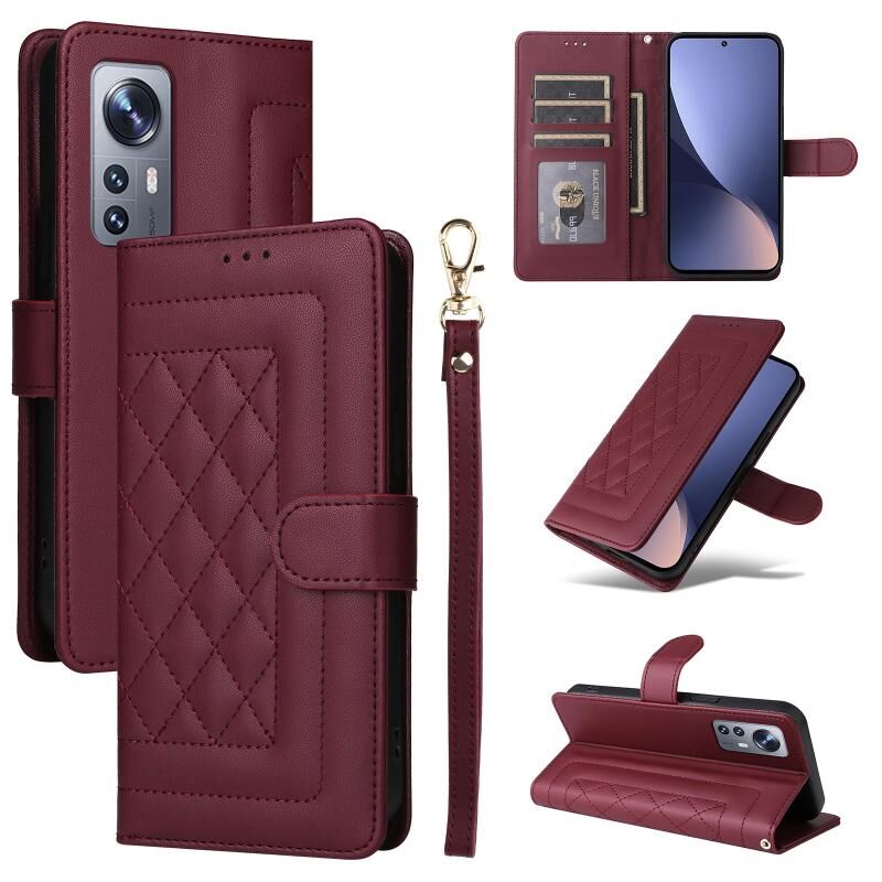 Για Xiaomi 12 / 12X Diamond Lattice Δερμάτινη θήκη Flip Phone Case (κόκκινο κρασί)
