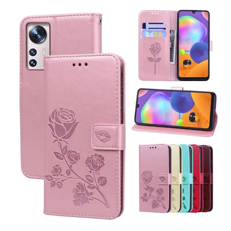 Θήκη τηλεφώνου για Xiaomi 12/12X με ανάγλυφο σχέδιο τριαντάφυλλου, από δερματίνη PU (Ροζ χρυσός)