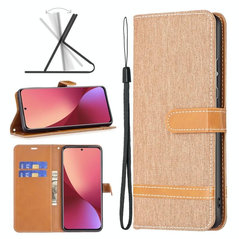 Για Xiaomi 12 χρώμα που ταιριάζει με Denim Υφή δερμάτινη θήκη τηλεφώνου (καφέ)