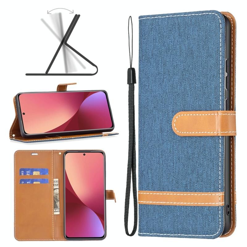 Για Xiaomi 12 Χρώμα που ταιριάζει με Denim Υφή δερμάτινη θήκη τηλεφώνου (σκούρο μπλε)