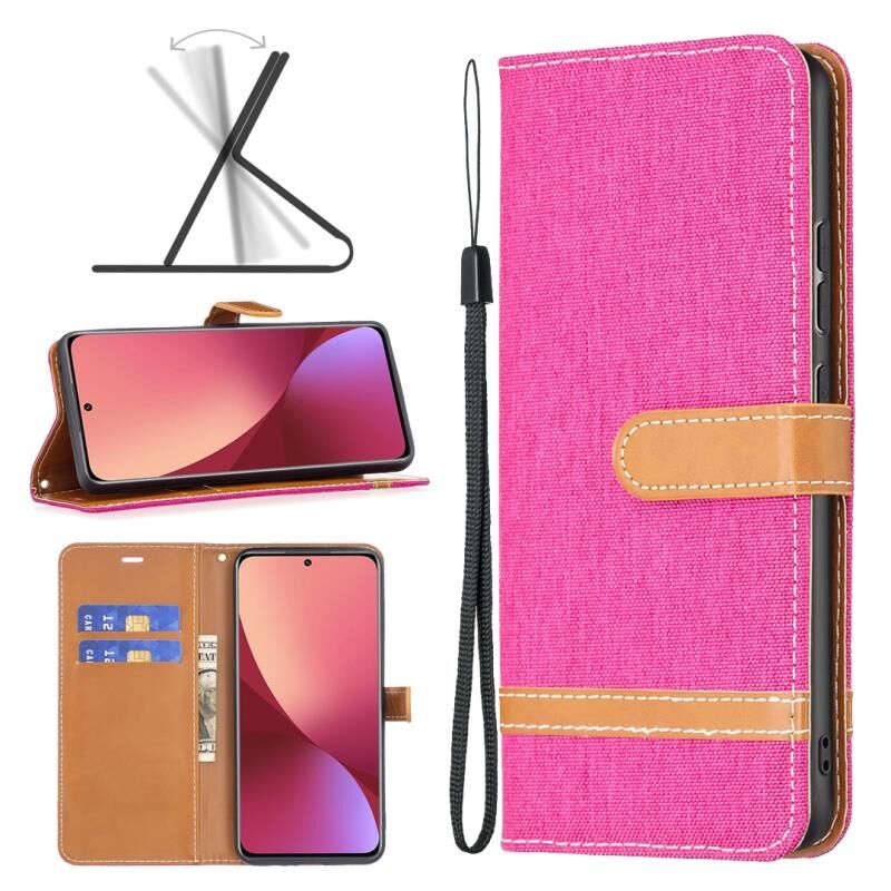 Για Xiaomi 12 χρώμα που ταιριάζει με Denim Υφή δερμάτινη θήκη τηλεφώνου (Rose Red)