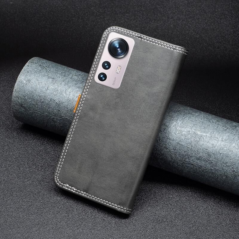 Θήκη τηλεφώνου δερμάτινη διπλής ραφής για Xiaomi 12, σε μαύρο χρώμα. (Μαύρο)