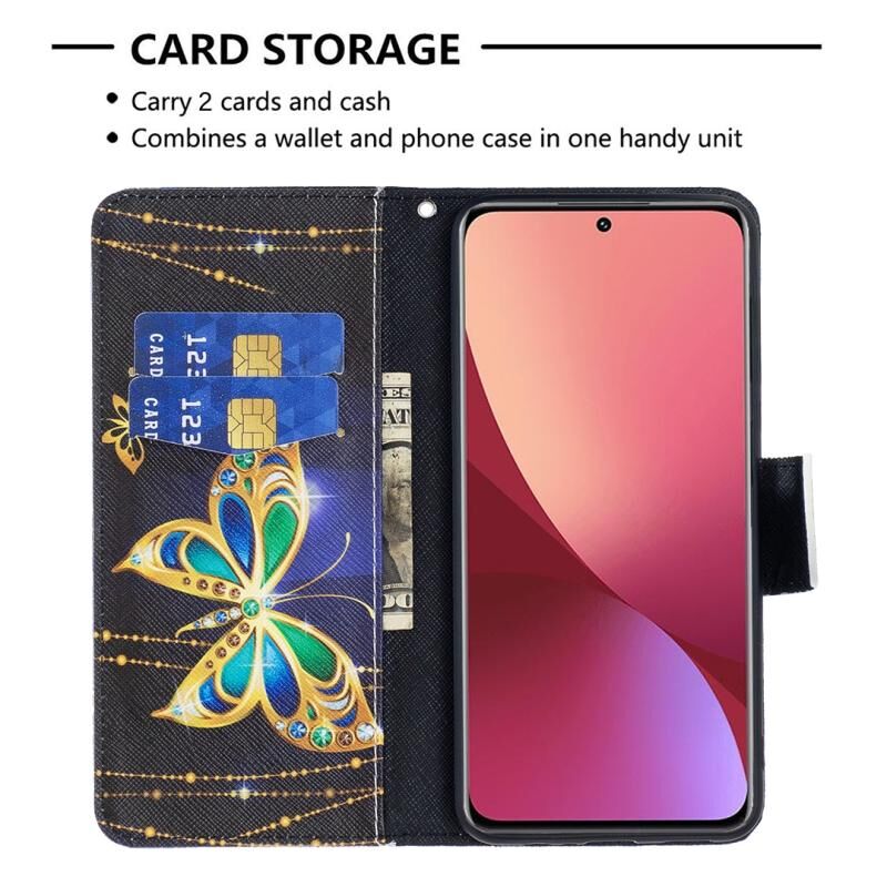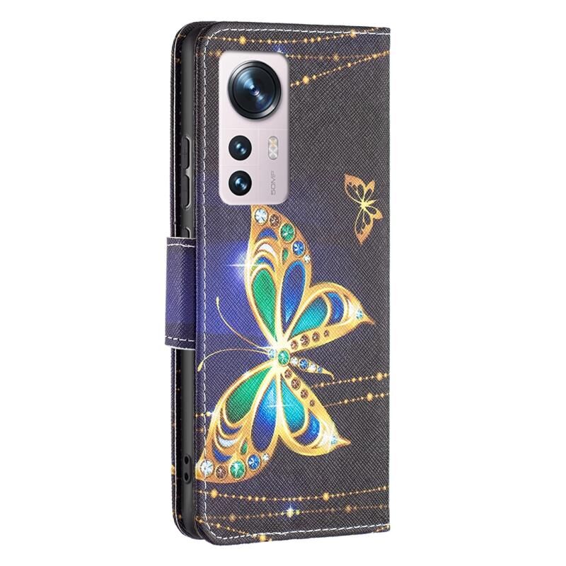 Θήκη τηλεφώνου από δέρμα με έγχρωμο σχέδιο για Xiaomi 12 (Μεγάλη Πεταλούδα)