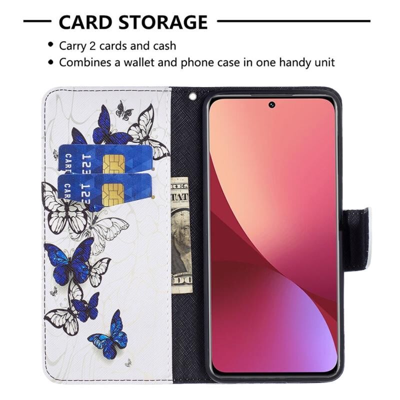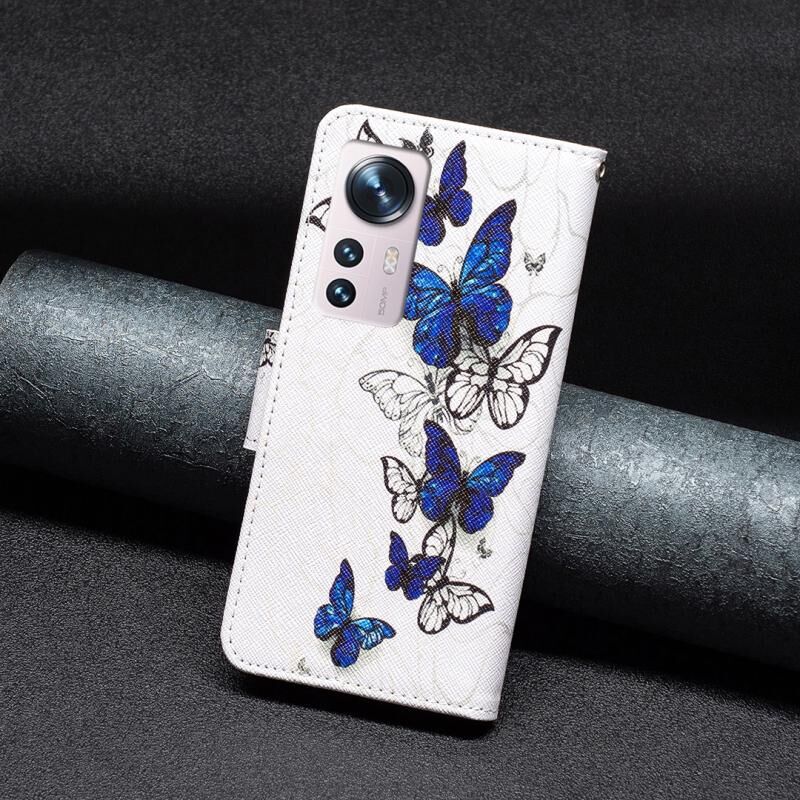 Θήκη τηλεφώνου από δέρμα με έγχρωμο σχέδιο για Xiaomi 12 (Πεταλούδες)