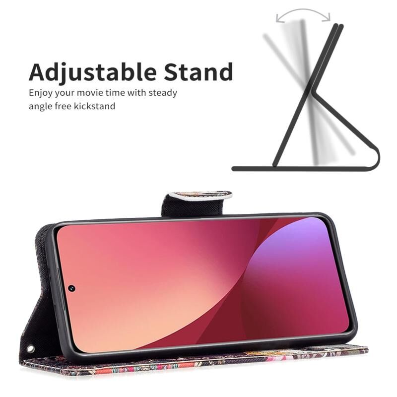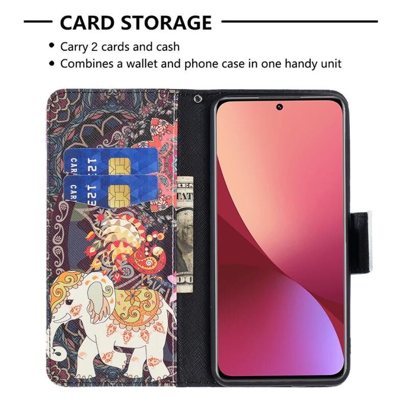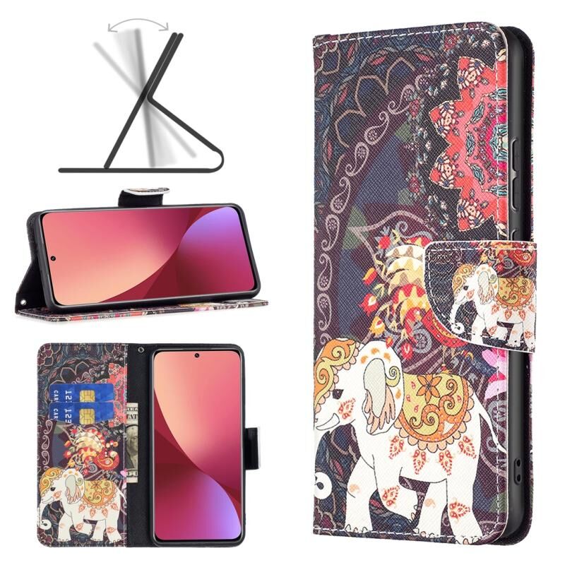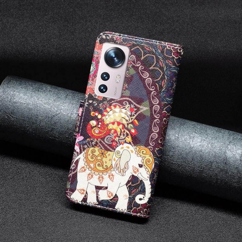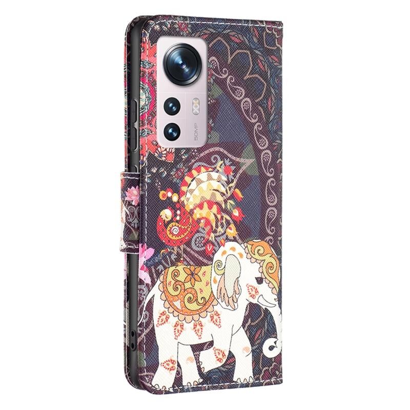Θήκη τηλεφώνου από δέρμα με έγχρωμο σχέδιο για Xiaomi 12 (Λουλούδια Ελέφαντας)