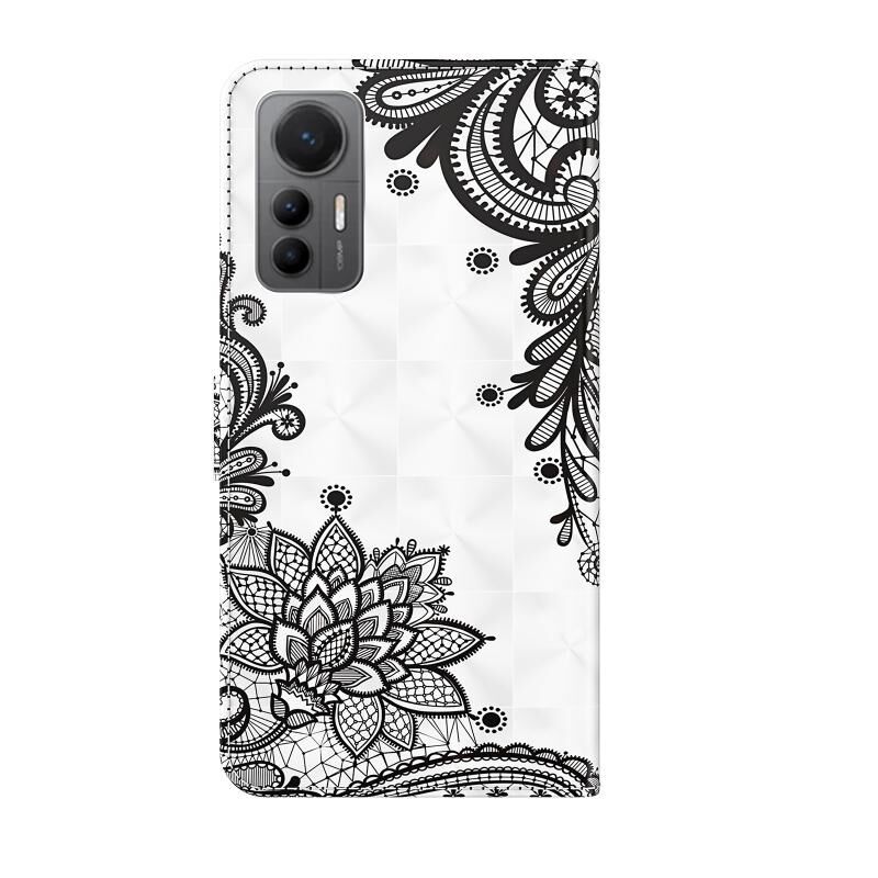 Θήκη τηλεφώνου για Xiaomi 12 Lite 4G/5G, TPU + Δερμάτινη PU με σχέδιο 3D ζωγραφικής (Μαύρο Λουλούδι Διαγώνια)