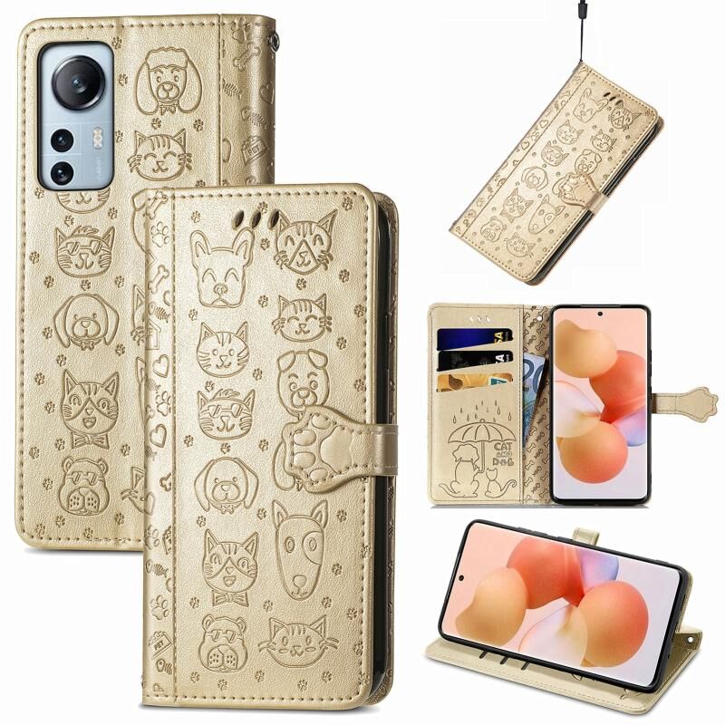Θήκη τηλεφώνου από δέρμα με ανάγλυφα σχέδια γάτας και σκύλου για Xiaomi 12 Lite (Μωβ)