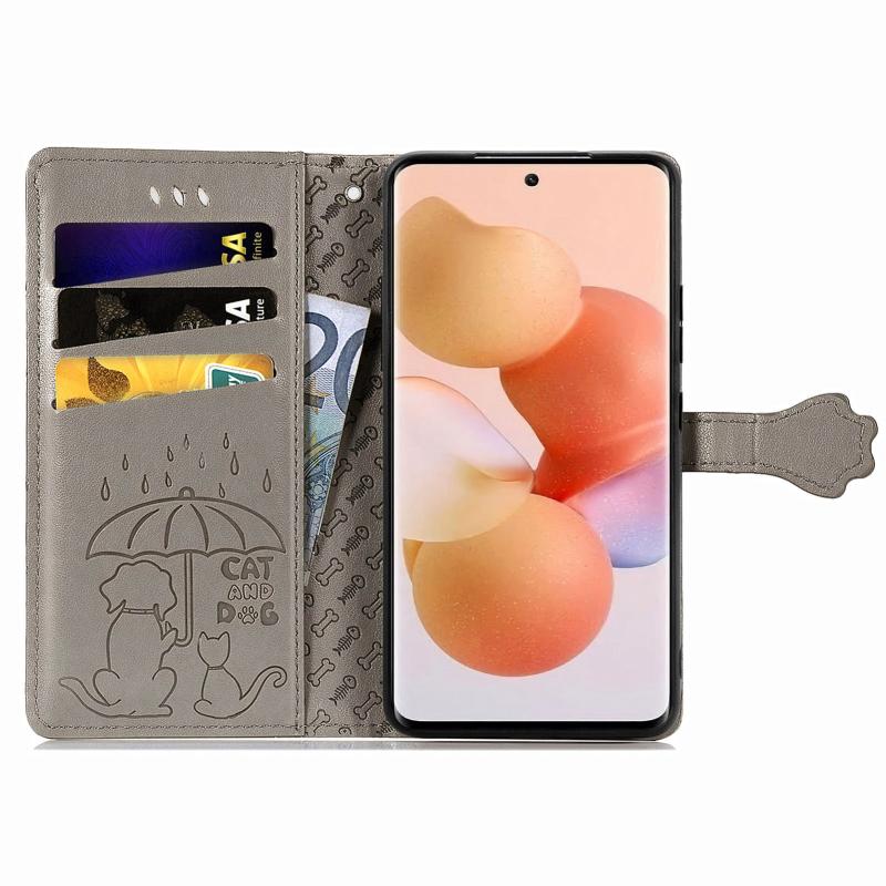 For Xiaomi 12 Lite Cute Cat and Dog Embossed Leather Phone Case(Gray)