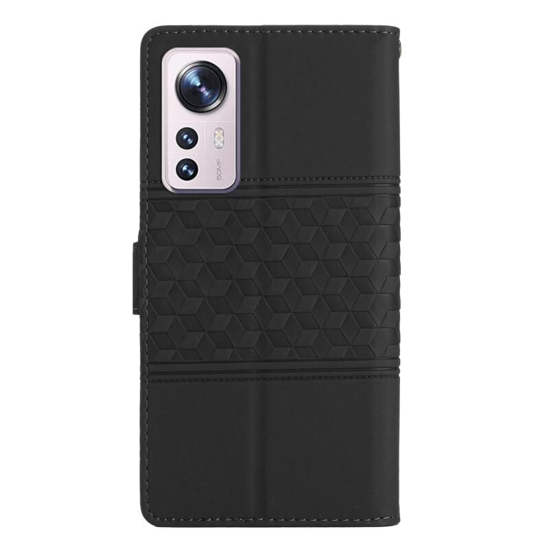 Για Xiaomi 12 Lite Diamond ανάγλυφο δέρμα αίσθηση δερμάτινη θήκη τηλεφώνου με κορδόνι (Μαύρο)
