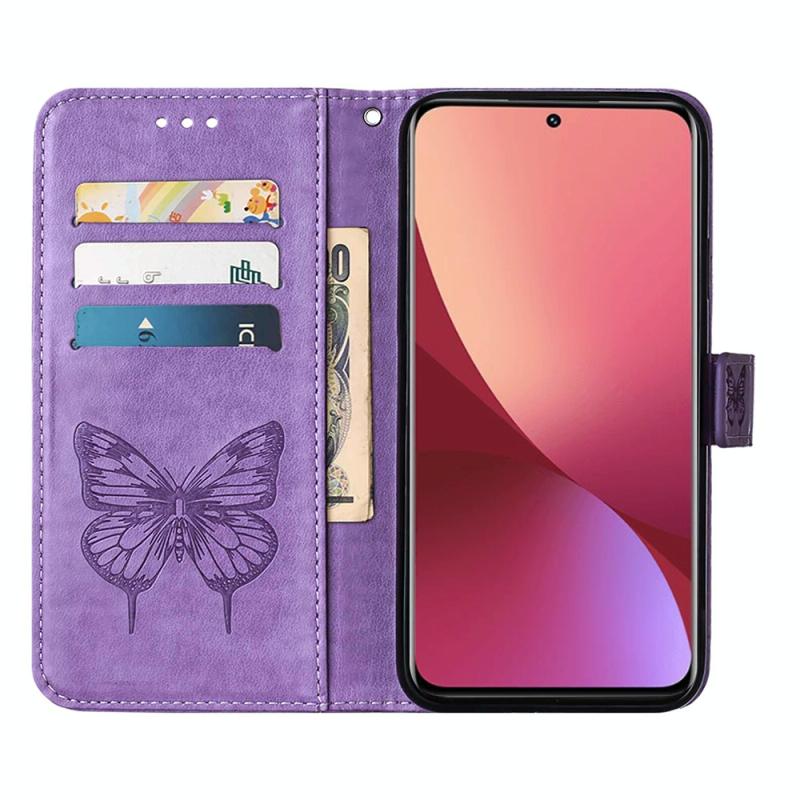 Θήκη τηλεφώνου δερμάτινη με ανάγλυφο σχέδιο πεταλούδας για Xiaomi 12 Lite (Κόκκινο)