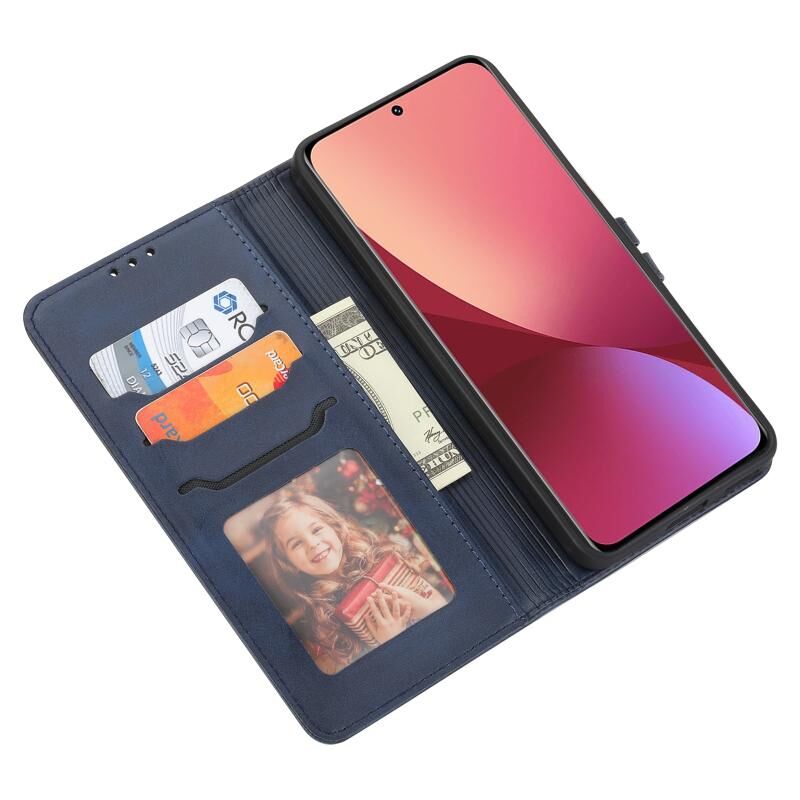 Θήκη τηλεφώνου από δέρμα με ανάγλυφο σχέδιο χαρούμενης γάτας για Xiaomi 12 Lite (Μπλε)