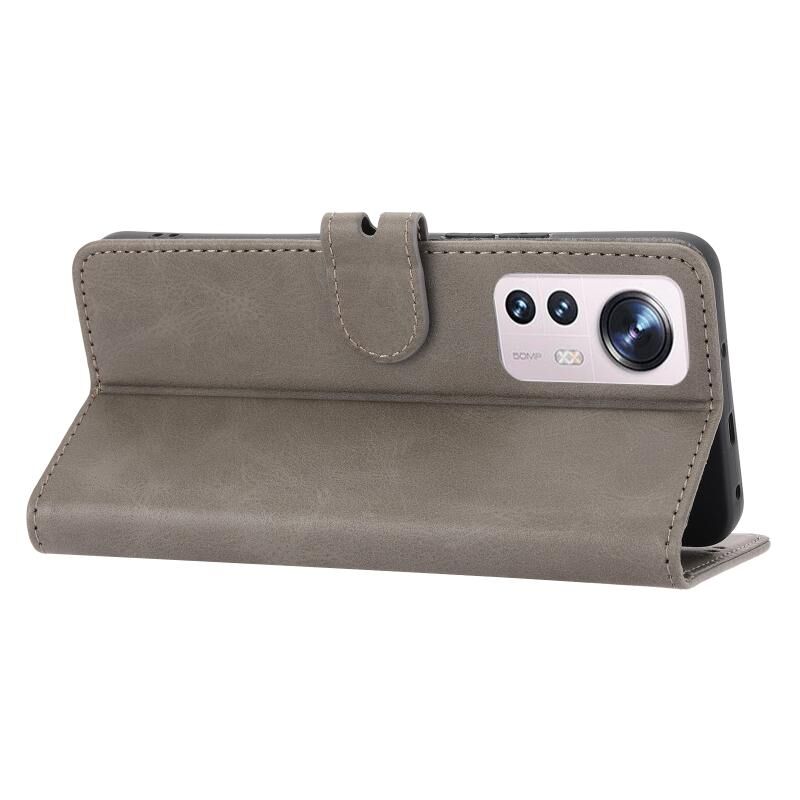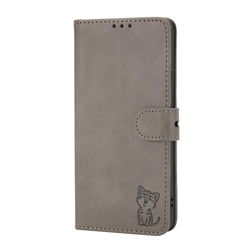 Θήκη τηλεφώνου από δέρμα με ανάγλυφο σχέδιο χαρούμενης γάτας για Xiaomi 12 Lite (Γκρι)