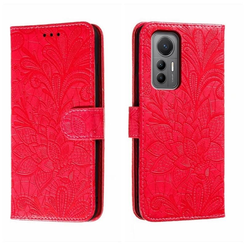 Για Xiaomi 12 Lite Lace λουλούδι ανάγλυφο Flip υπόθεση τηλεφώνου δέρμα (κόκκινο)