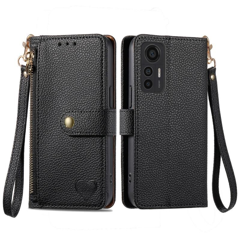 Για Xiaomi 12 Lite αγάπη φερμουάρ φερμουάρ δερμάτινη θήκη τηλεφώνου (Μαύρο)