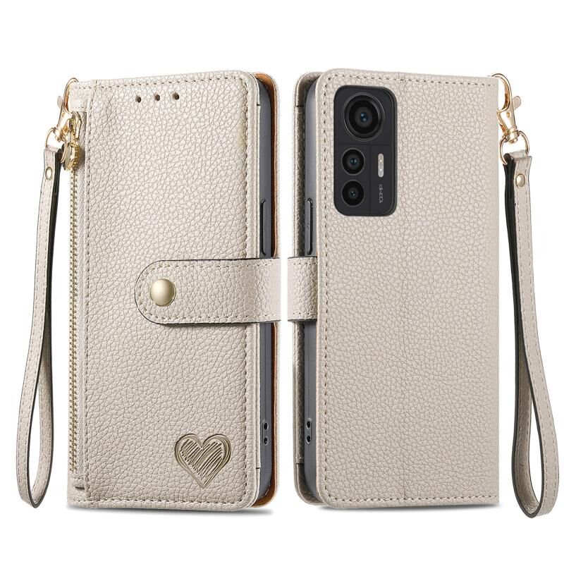 Για Xiaomi 12 Lite αγάπη φερμουάρ φερμουάρ δερμάτινη θήκη τηλεφώνου (γκρι)