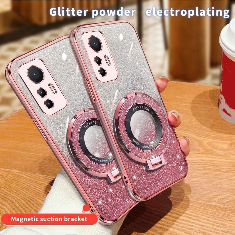 Για Xiaomi 12 Lite Επιμεταλλωμένο βαθμιδωτή Glitter Γύρος κάτοχος TPU τηλέφωνο υπόθεση (Μωβ)