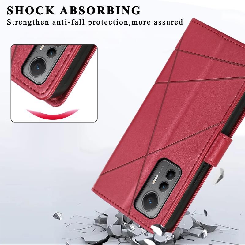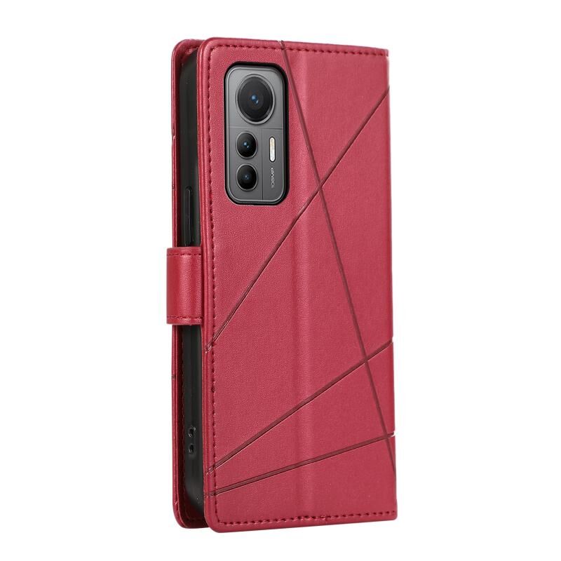Θήκη τηλεφώνου για Xiaomi 12 Lite από γνήσιο δέρμα PU με ανάγλυφη υφή και λεπτομέρειες γραμμής (Μπλε)
