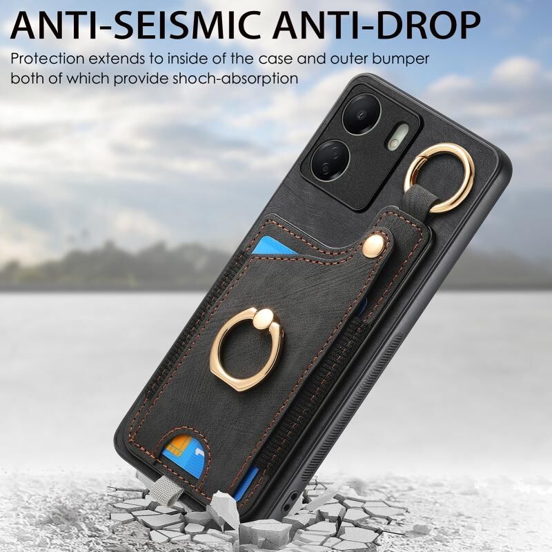 Για Xiaomi 12 Lite Ρετρό δέρμα αίσθηση δαχτυλίδι κάρτα τσάντα υπόθεση τηλεφώνου με Hang Loop (Μαύρο)