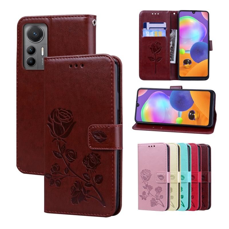 Θήκη τηλεφώνου για Xiaomi 12 Lite Rose Embossed Flip από Δερματίνη PU (Καφέ)