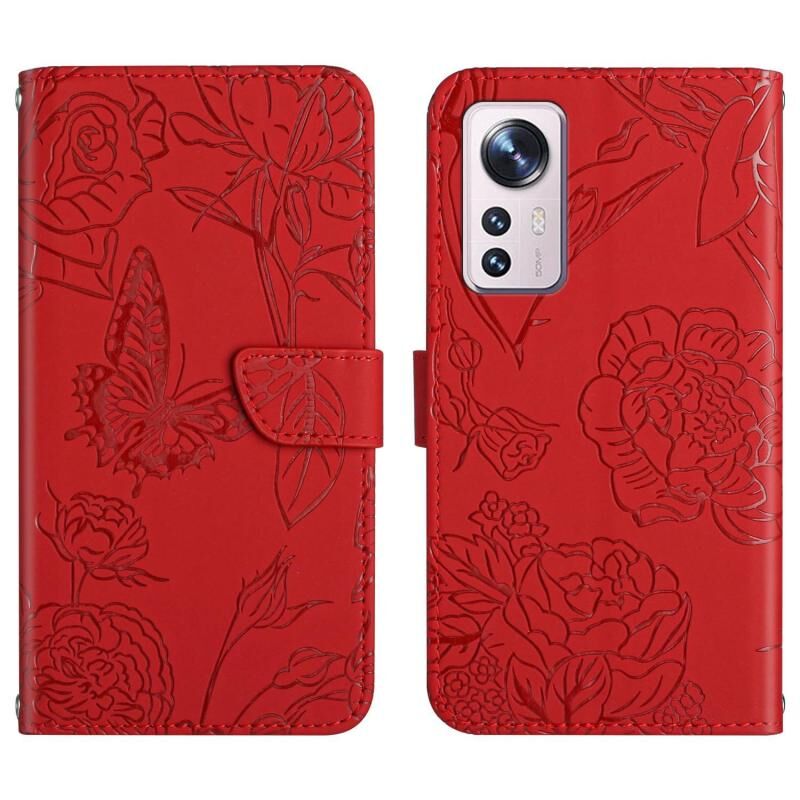 Θήκη τηλεφώνου από δέρμα με ανάγλυφο σχέδιο πεταλούδας και παιώνιας για Xiaomi 12 Lite (Κόκκινο)