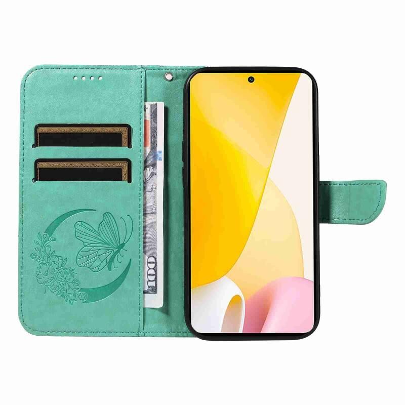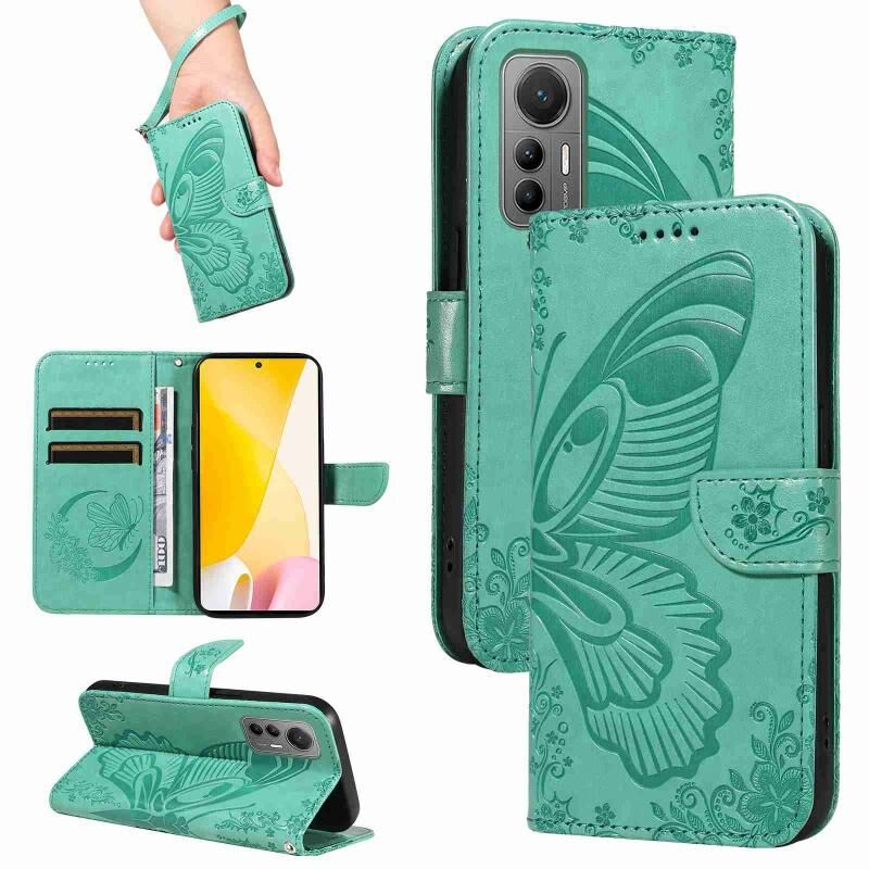 Θήκη τηλεφώνου από δέρμα με ανάγλυφο σχέδιο πεταλούδας Swallowtail για Xiaomi 12 Lite (πράσινο)