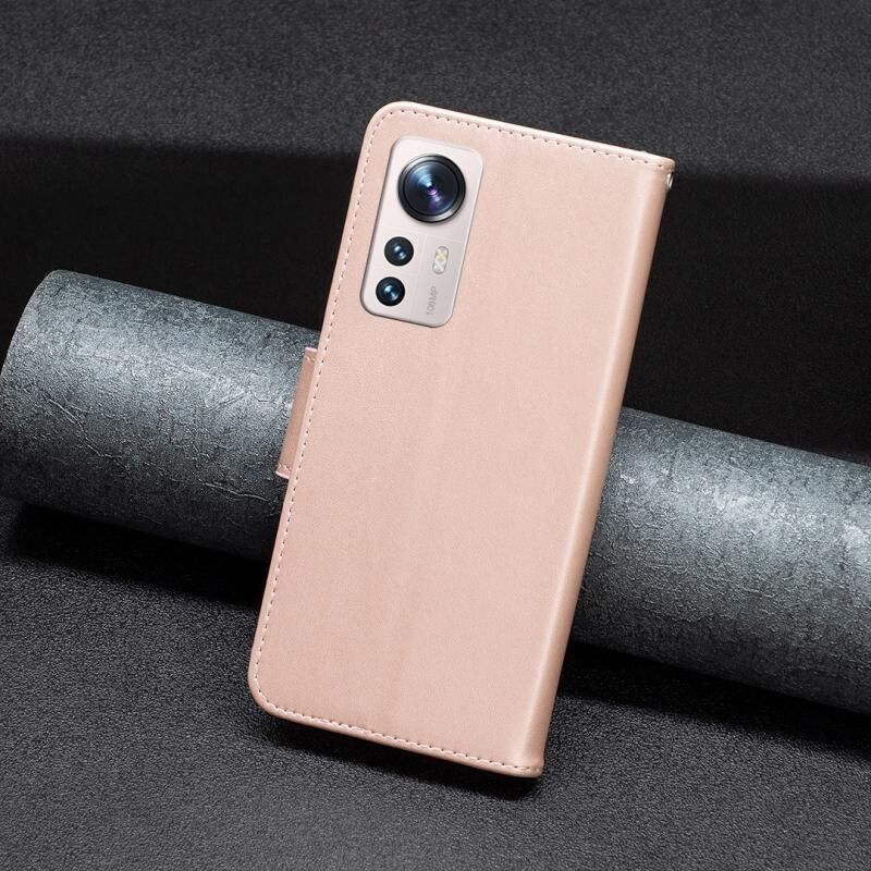 Θήκη τηλεφώνου δερμάτινη με ανάγλυφο σχέδιο δύο πεταλούδων για Xiaomi 12 Lite (Ροζ χρυσός)