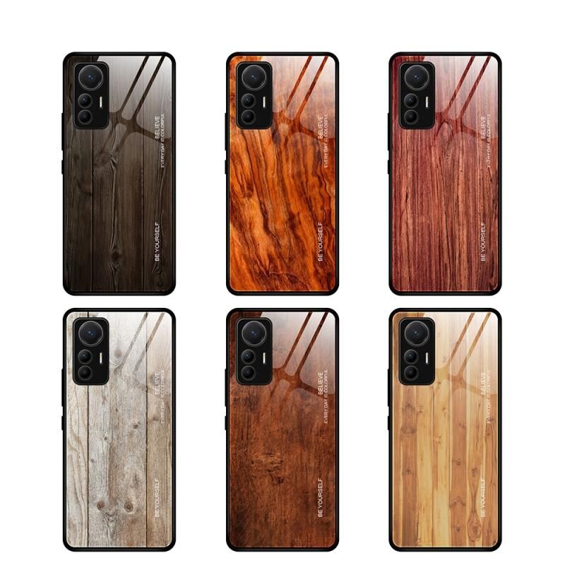 Για Xiaomi 12 Lite Wood Grain Glass Προστατευτική θήκη (ανοιχτό καφέ)