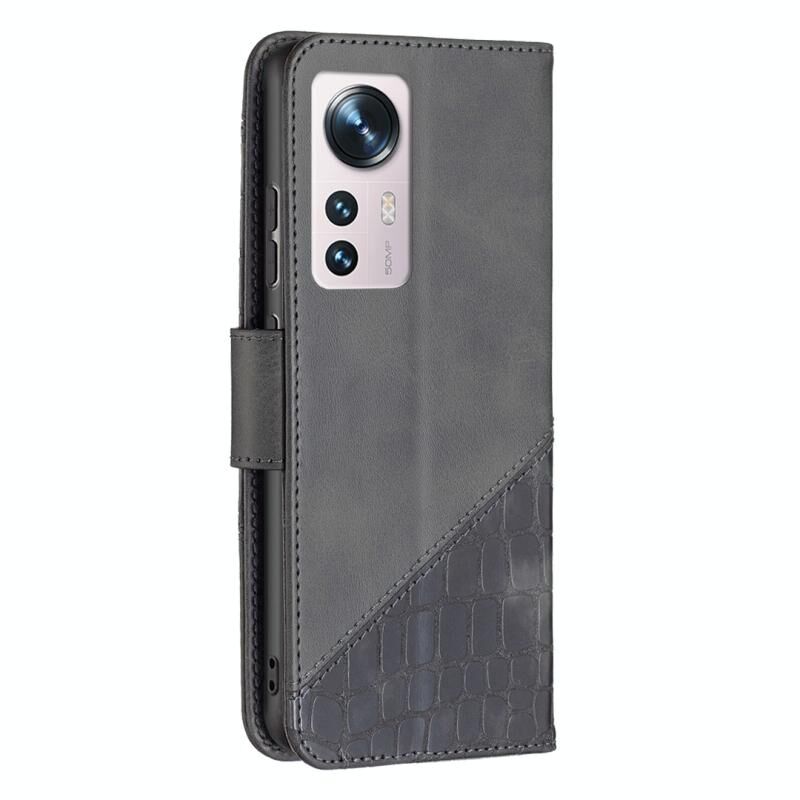 Για Xiaomi 12 ταιριάζουν χρώμα κροκόδειλος υφή PU δέρμα τηλέφωνο υπόθεση (μαύρο)
