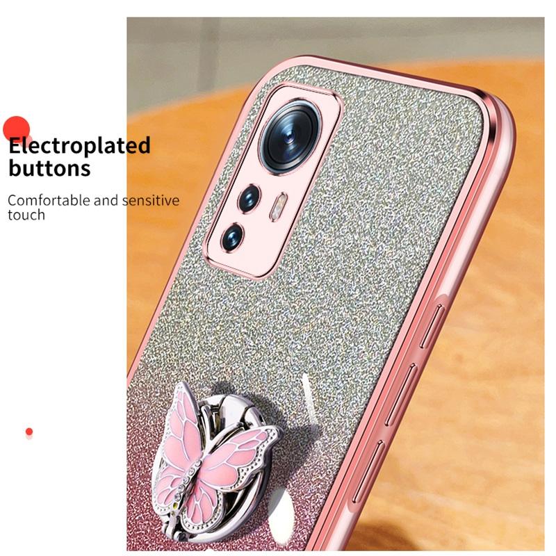 For Xiaomi 12 Plated Gradient Glitter Butterfly Holder TPU Phone Case(Pink)