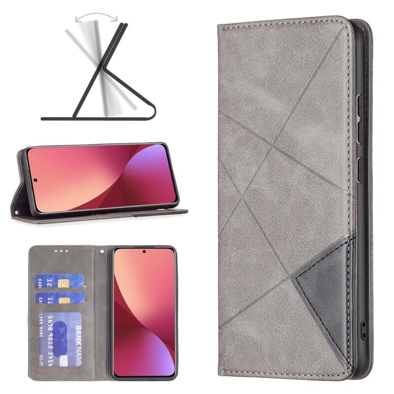 Για Xiaomi 12 Prismatic Αόρατη μαγνητική δερμάτινη θήκη τηλεφώνου (Γκρι)