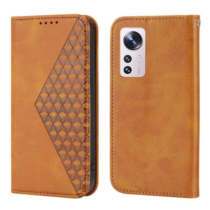 Για Xiaomi 12 Pro/12S Pro Cubic Grid Calf Texture μαγνητικό κλείσιμο δερμάτινη θήκη τηλεφώνου (κίτρινο)