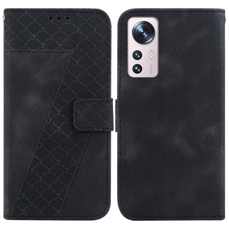 Για Xiaomi 12 Pro 7-σχήμα ανάγλυφη δερμάτινη θήκη τηλεφώνου (μαύρο)