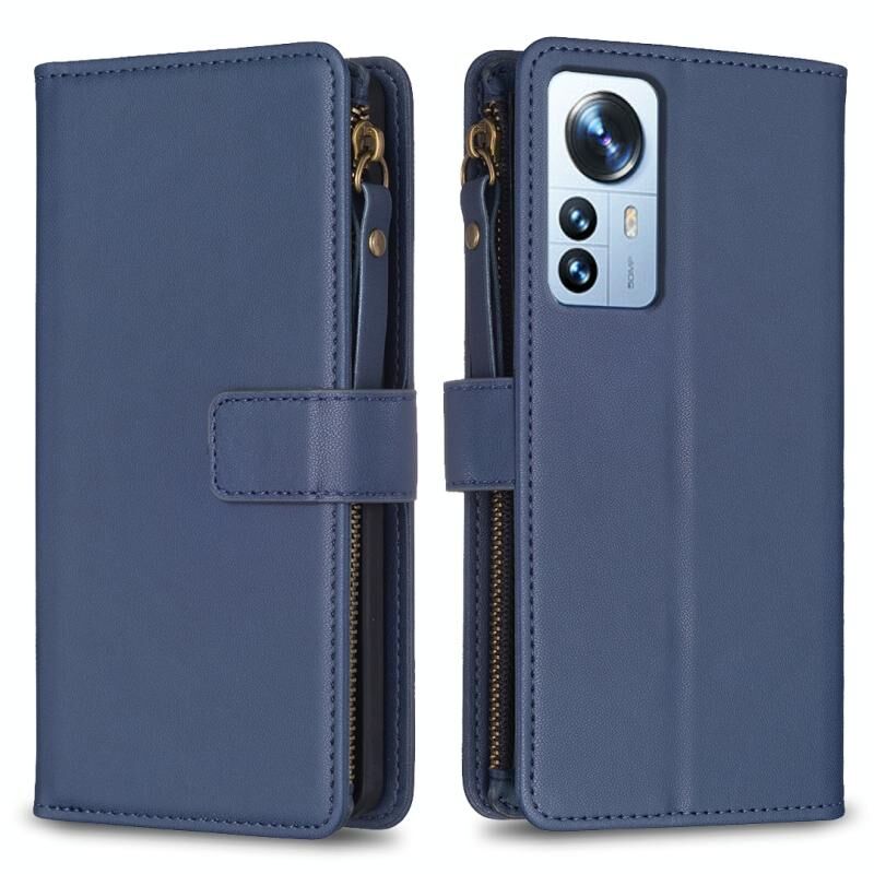 Για Xiaomi 12 Pro 9 υποδοχές κάρτας φερμουάρ πορτοφόλι δέρμα Flip υπόθεση τηλεφώνου (μπλε)