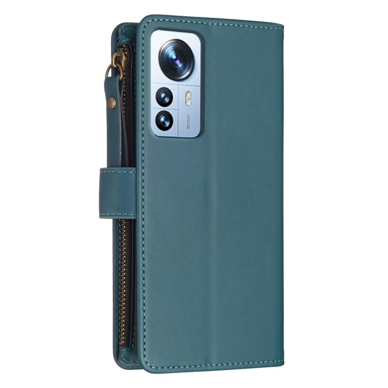 Για Xiaomi 12 Pro 9 υποδοχές κάρτας φερμουάρ πορτοφόλι δέρμα Flip υπόθεση τηλεφώνου (πράσινο)
